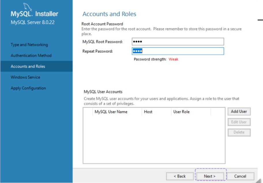 MySQL 서버에 접속할 때 사용할 비밀번호를 설정해주면 된다.