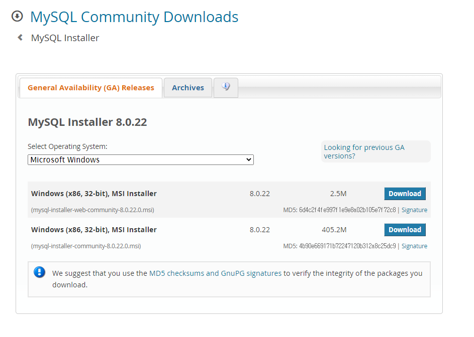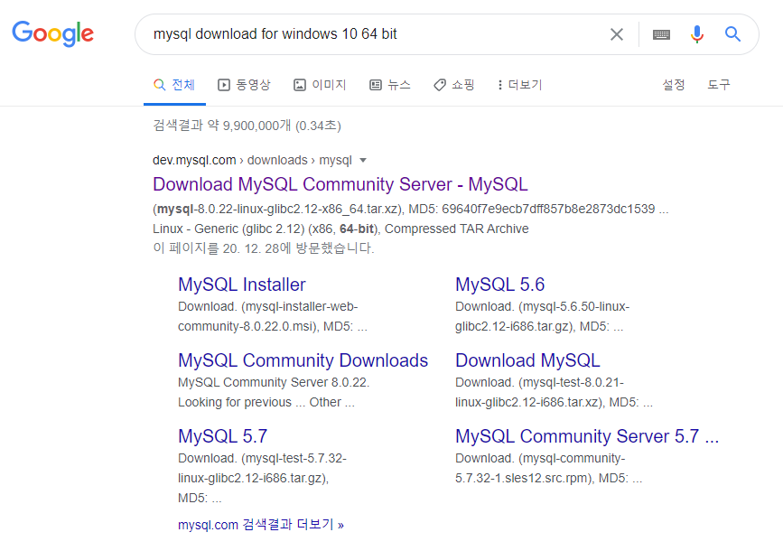 이러한 페이지가 뜬다. 64bit여도 그냥 저 두 번째에 있는 것을 다운로드하면 된다.