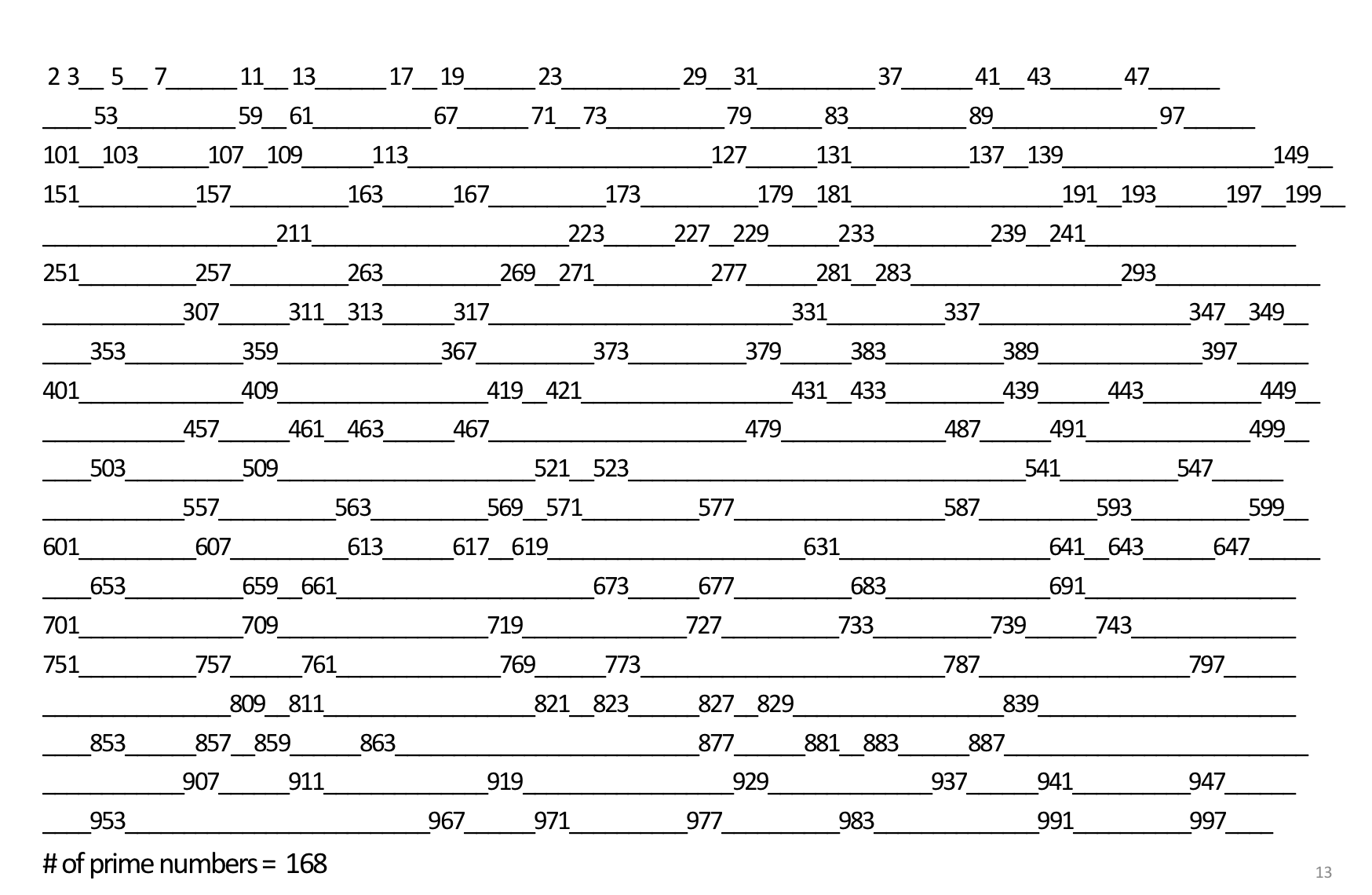 print('# of prime numbers = ', len(prime_list))