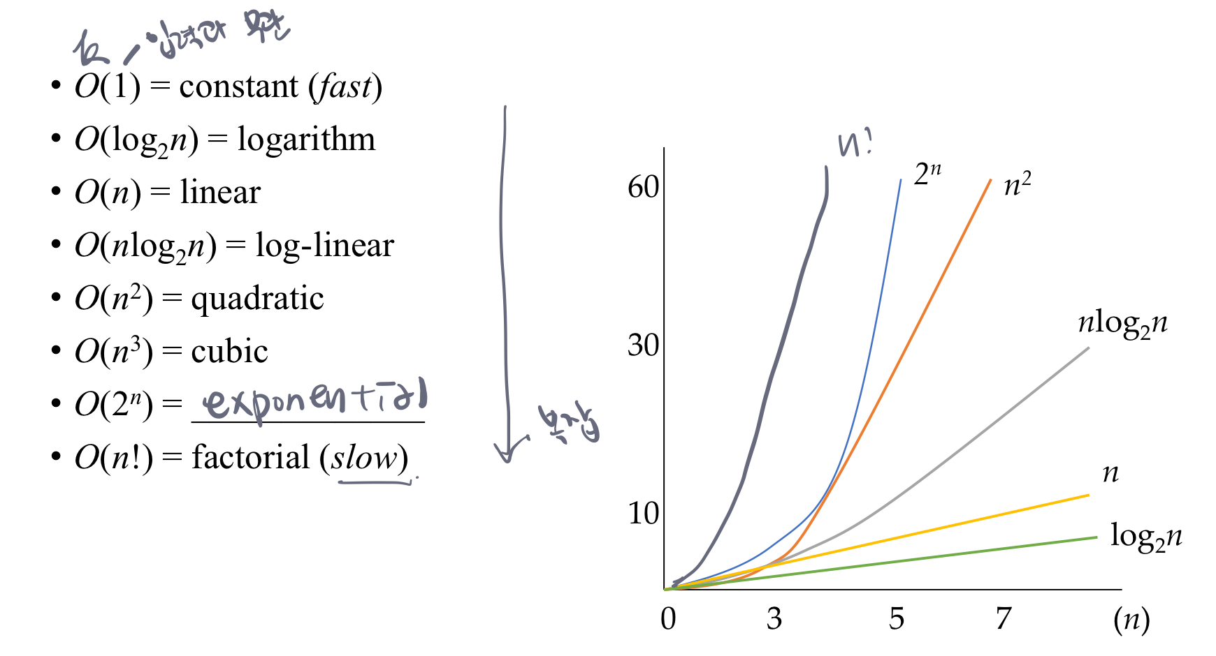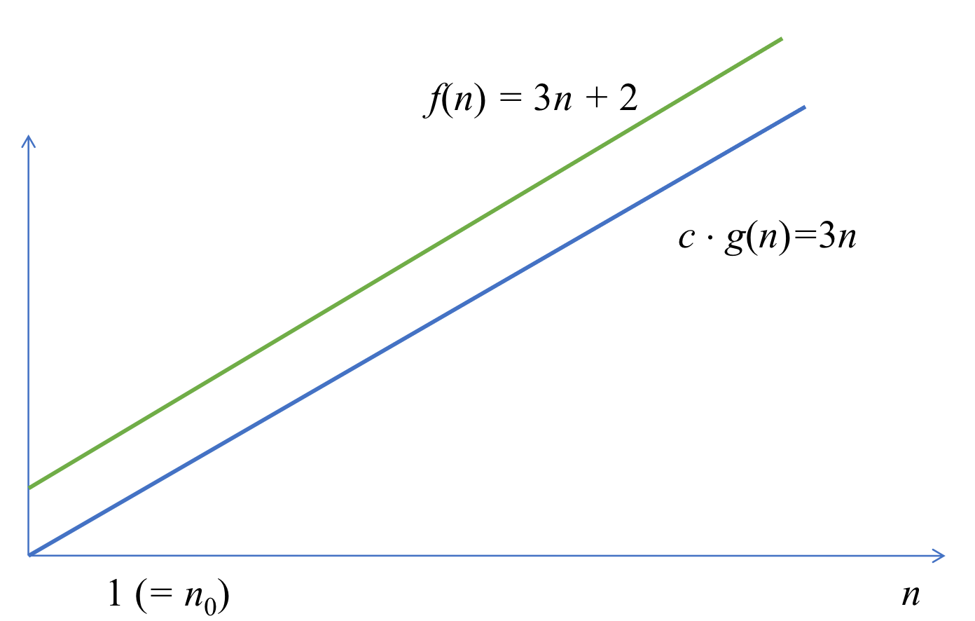 - c * g(n)은 f(n)의 상한선 → c * g(n)보다는 시간이 적게 걸림