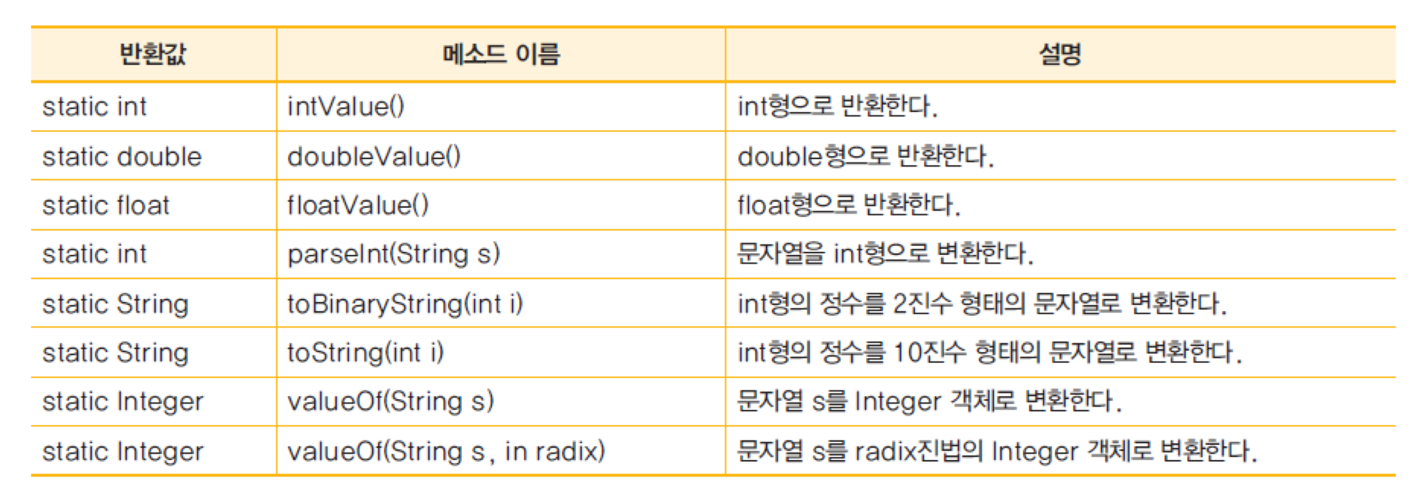 - 정수와 같은 기초 자료형을 객체로 포장하고 싶은 경우 사용
