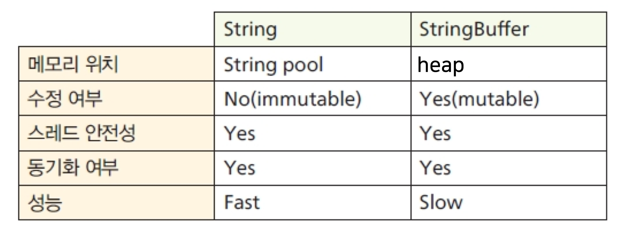 - String 클래스의 경우 빈번하게 문자열을 변경할 때 비효율적