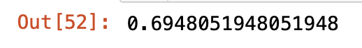 예측데이터셋에서 틀린 예측의 수를 뺀 비율로 정확도를 구했더니 약 69%가 나왔다.