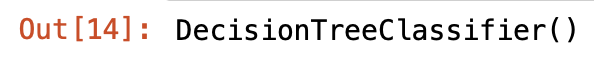 decision tree classifier 알고리즘을 사용할 것이기 때문에 이 알고리즘을 model 변수에 저장해준다.