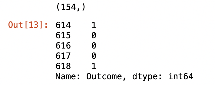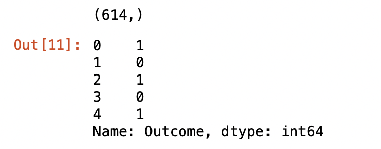 위에서 5개 데이터의 예측 결과를 보자면 이와 같다. 1은 당뇨병, 0은 당뇨병이 아니라는 것이다.
